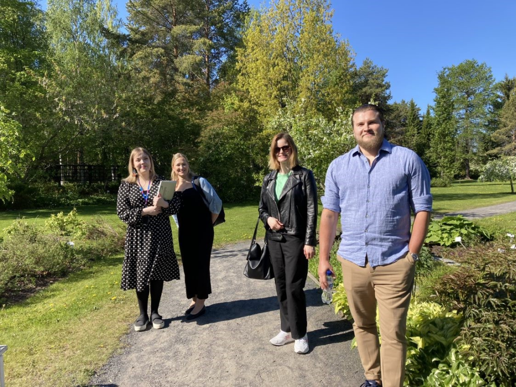 Järjestimme keskiviikkona 14.6.2023 aamupalatilaisuuden kuudelle Oulussa toimivalle työelämäedustajalle Oulun yliopiston viehättävässä, kasvitieteellisessä puutarhassa. Tilaisuus aloitettiin maittavalla brunssilla, jonka aikana KoKiVa-hanketta esittelivät hankkeen vastuullinen johtaja, professori Hanni Muukkonen sekä projektipäällikkö Jenni Kunnari. Tilaisuuden tavoitteena oli tehdä hankkeen toimintaa tutuksi, ja muodostaa kohtaamisia hankeväen ja vieraiden välille ”learning café” -tyyppisellä työskentelyllä.
