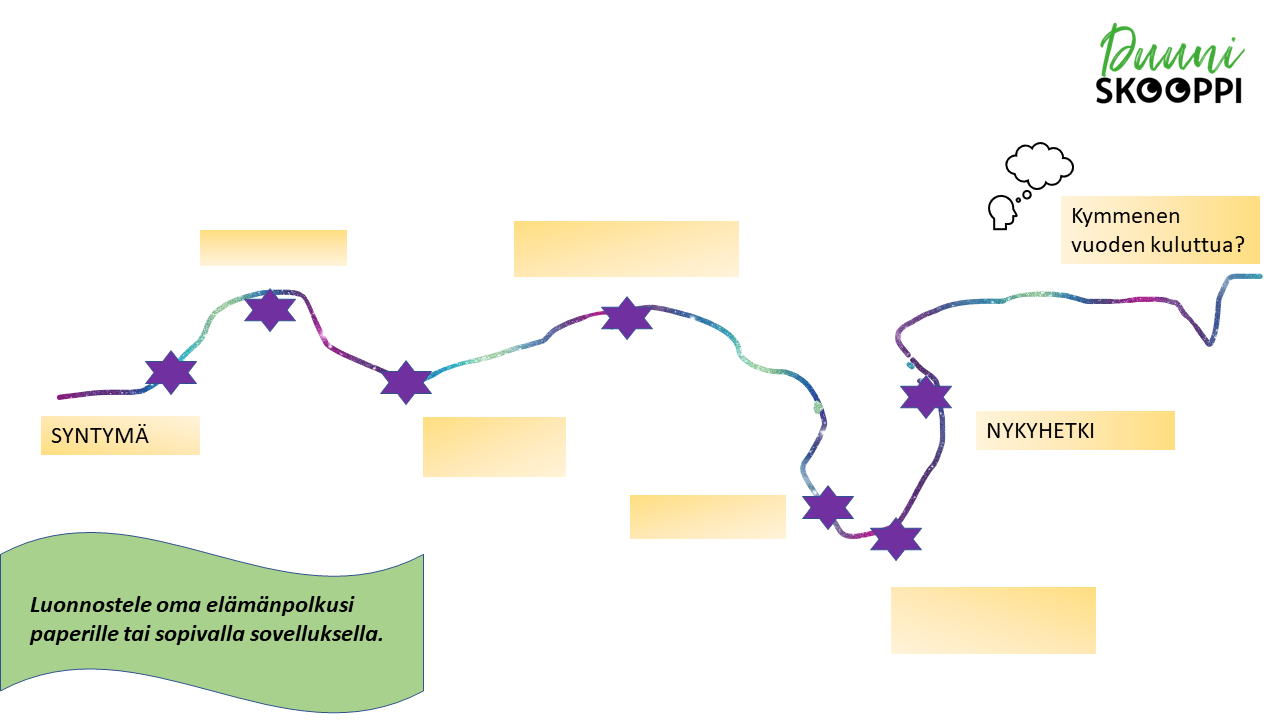 Kirjoita elämänpolkutehtävään omia elämänvaiheitasi ja kokemuksia, jotka ovat olleet sinulle erityisen merkityksellisiä: